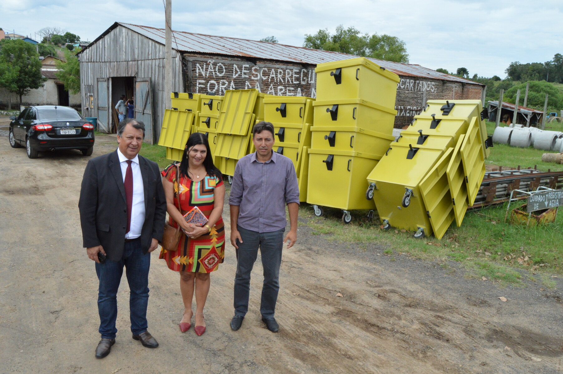 Na manhã desta quarta-feira (22) o prefeito Ico Charopen e a vice-prefeita Mari Machado, acompanhados do secretário de Obras, Serviços Urbanos e Trânsito, Ricardo Dutra, receber os 50 contêineres de lixo que ficarão espalhados pela cidade, após o nova licitação com a empresa de lixo Ansus, que presta o serviço para Sant’Ana do Livramento.