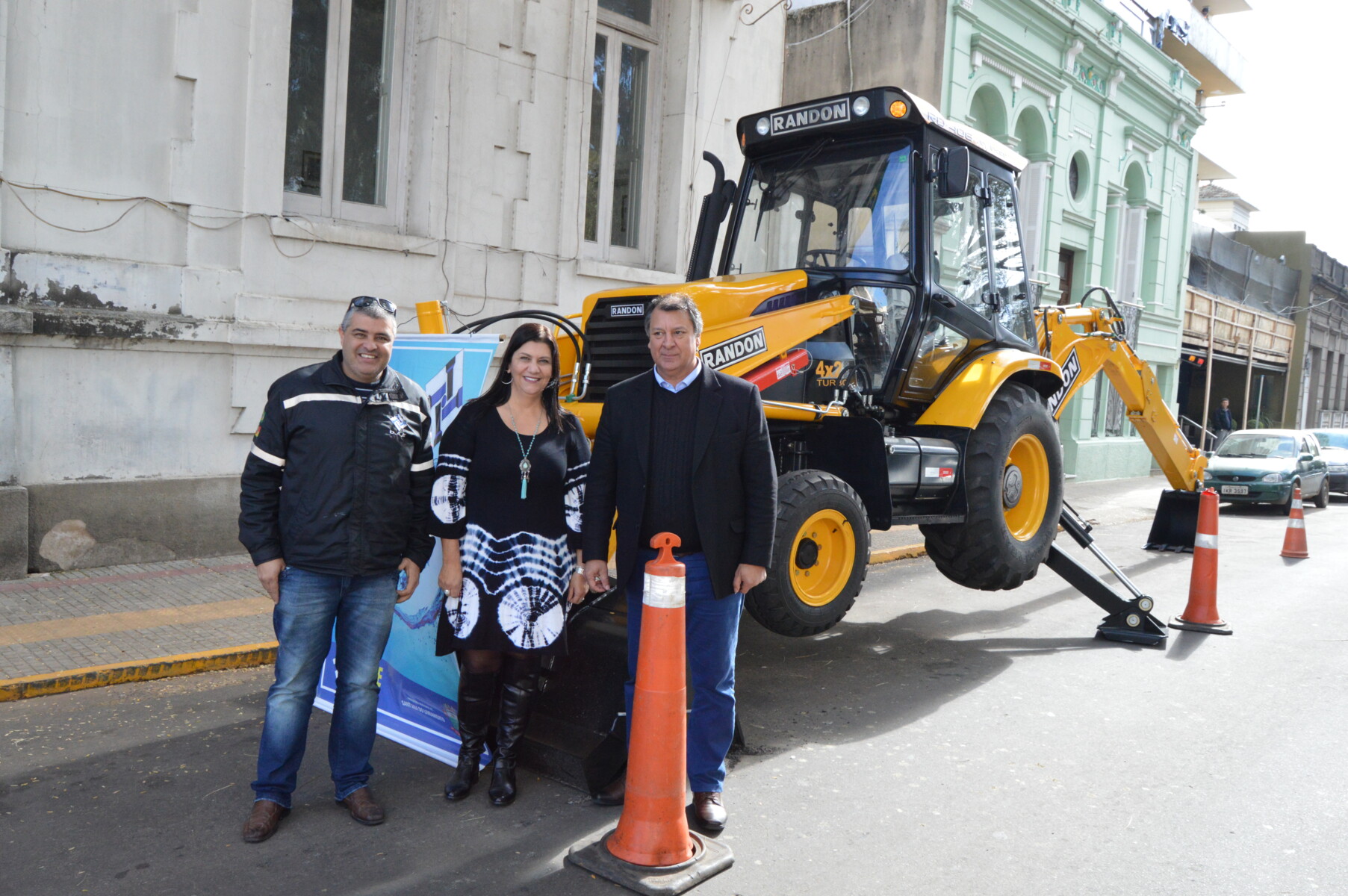 O Prefeito Ico Charopen e a Vice-Prefeita Mari Machado receberam na manhã desta sexta-feira (4), em frente a Prefeitura Municipal, a nova retroescavadeira do Departamento de Água e Esgoto.
