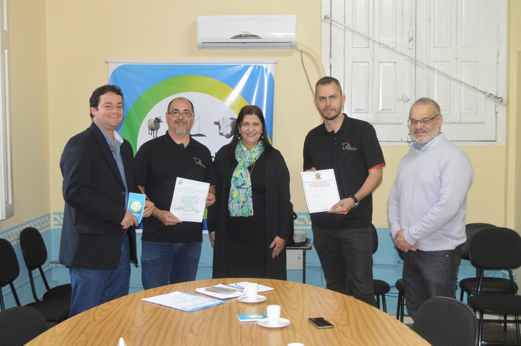 Mais um importante empreendimento passou pela Sala do Investidor nesta terça-feira (5). A vice-prefeita e secretária geral de Governo, Mari Machado e o secretário de Desenvolvimento, Calico Grisolia receberam no local, os empresários Marcelo Machado e Regis Rodrigues, proprietários da Pulperia Casa de Carnes. Acompanhados do vereador Mauricio Galo Del Fabro, os empresários receberam os alvarás de localização e de saúde do empreendimento.