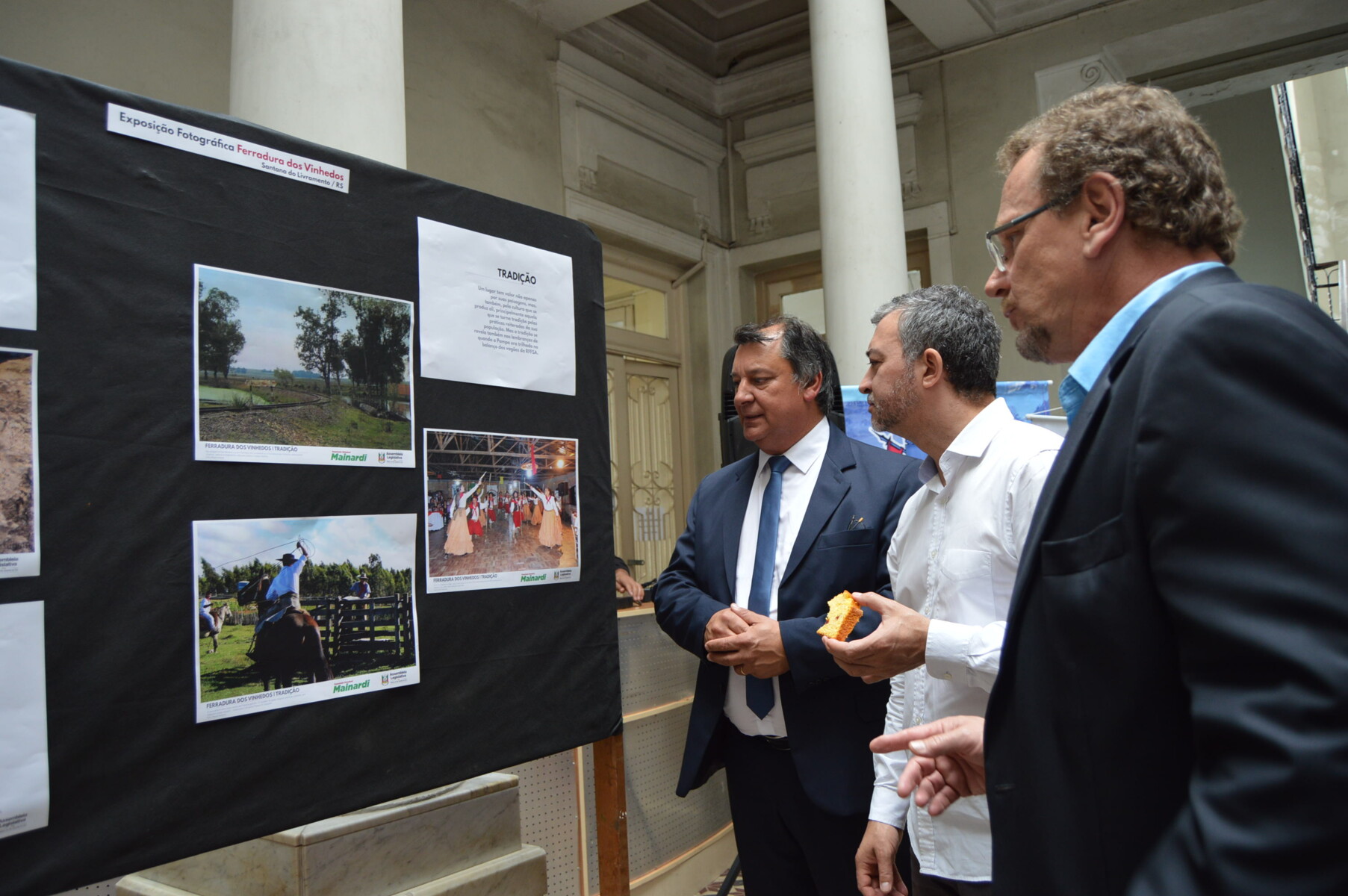 Até o próximo dia 07, o saguão do Palácio Moyses Vianna abriga a exposição fotográfica “Roteiro Ferradura dos Vinhedos de Sant’Ana do Livramento”, com uma ampla mostra das belezas naturais e culturais que integram o trajeto. A abertura da exposição aconteceu na manhã desta sexta-feira (27), com a presença do prefeito Ico Charopen; do presidente da Assembleia Legislativa, Deputado Estadual Edegar Pretto; do Deputado Estadual Luiz Fernando Mainardi; de vereadores e secretários municipais; da atual coordenadora do Projeto da Ferradura dos Vinhedos, a professora da Unipampa, Tanise Brandão e representantes das atrações do roteiro. Também prestigiaram a abertura, representantes da Brigada Militar, ACIL e Corpo de Bombeiros.