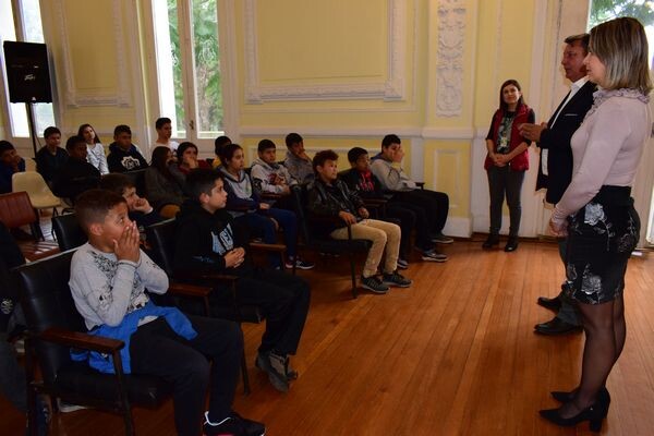 O grupo foi recebido no Palácio Moyses Vianna pela secretária de Turismo, Silvana Harden, que apresentou parte da estrutura do local. Os alunos também conheceram o Gabinete do Prefeito, onde puderam acompanhar um pouco do dia a dia do prefeito Ico Charopen. O grupo seguiu o passeio por pontos turísticos do município, acompanhados pela guia de turismo, Vera Reis.