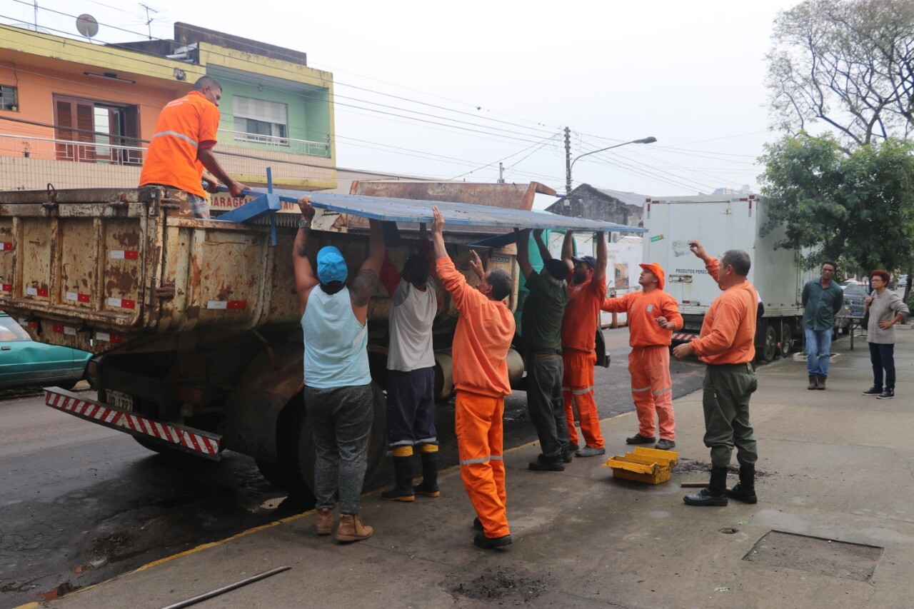 Na manhã de hoje (09), a Secretaria Municipal de Trânsito, Transporte e Mobilidade Urbana realizou a retirada para conserto do abrigo de ônibus localizada rua Silveira Martins, próximo a 07 de Setembro. O abrigo foi destruído por um ato de vandalismo no último final de semana. A Secretaria acredita que em três dias o abrigo estará recuperado.