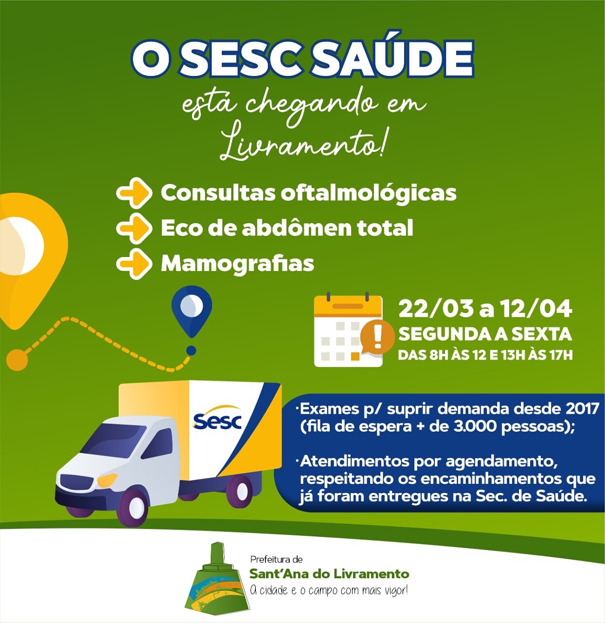 O Governo Municipal em mais uma parceria com o @sescsantanadolivramento traz a Santana do Livramento a CARRETA DO SESC SAÚDE! 👩⚕️👨⚕️