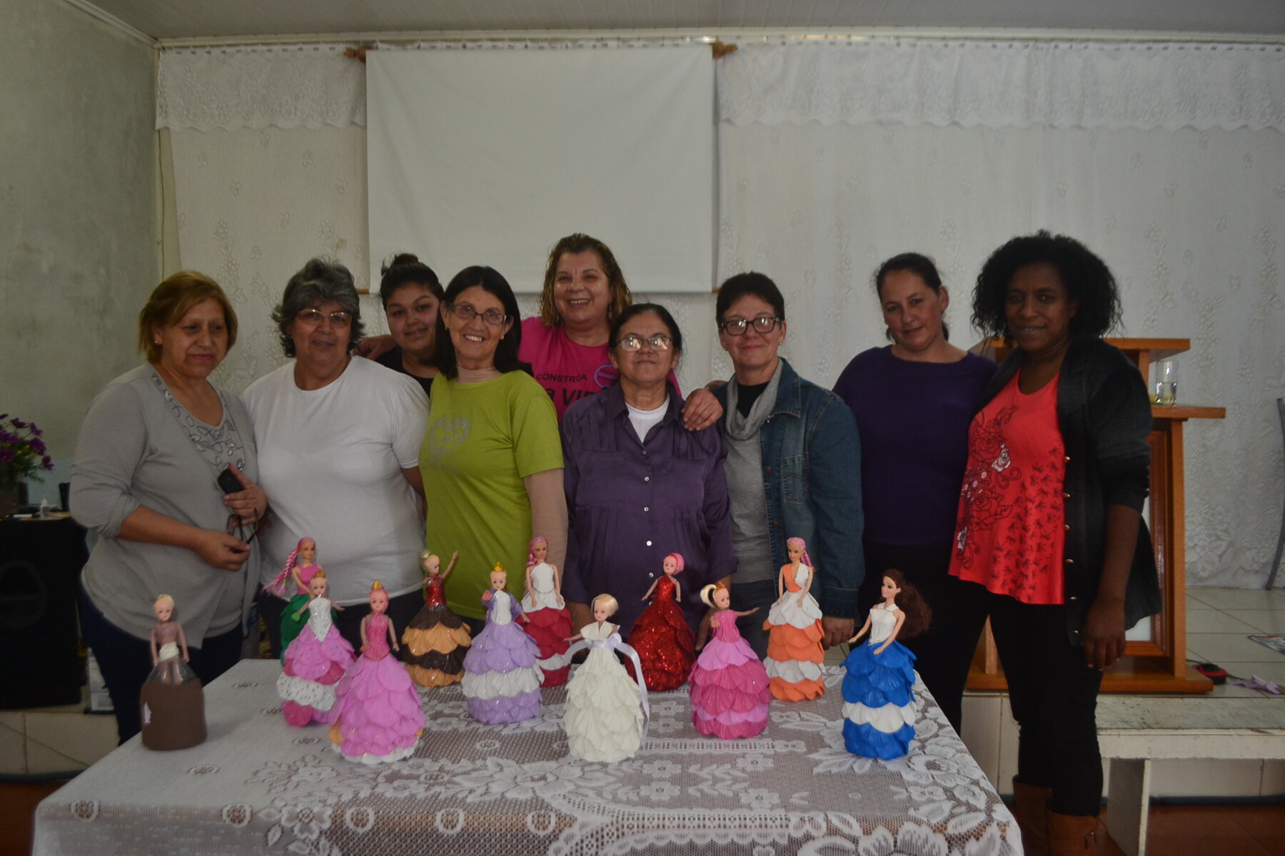 Cerca de 10 mulheres participaram do curso, que foi ministrado pelas professoras Maria de Fátima Rodrigues e Leiza Francisca, da Casa da Economia Solidária, na 6ª Igreja do Evangelho Quadrangular.
