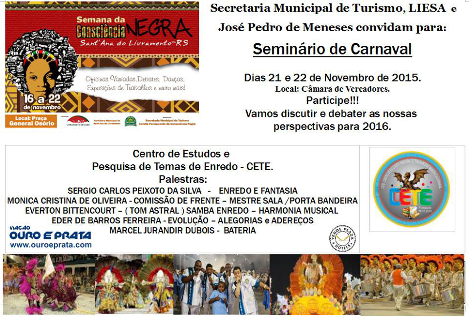 Será realizado, neste fim de semana, dias 21 e 22, um Seminário que irá abordar e debater as perspectivas para a realização do Carnaval 2016.