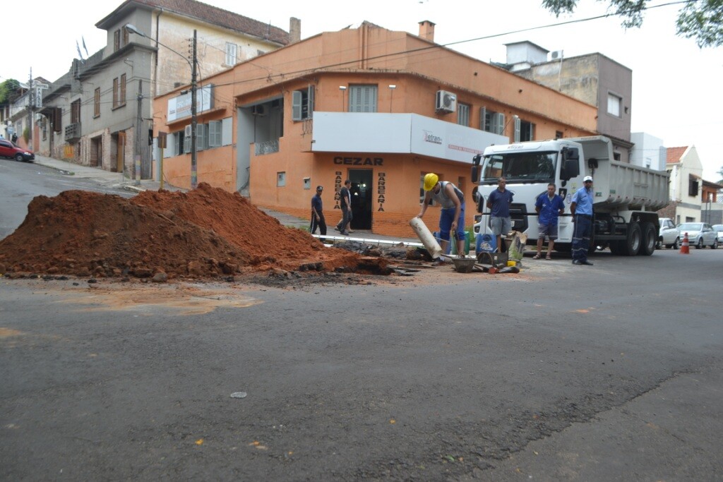 O Departamento de Água e Esgoto realizou, na manhã de hoje (12), o conserto da rede coletora de esgoto na esquina entre as ruas Silveira Martins e Manduca Rodrigues.