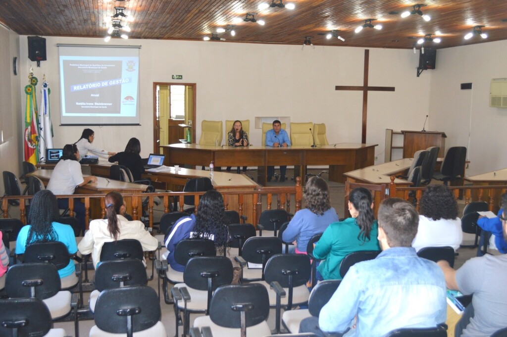 A Prefeitura Municipal, através da Secretaria da Saúde, realizou nesta quinta-feira (24), pela manhã, uma audiência pública na Câmara de Vereadores com o objetivo de apresentar a Prestação de Contas referente ao Relatório de Monitoramento em Gestão de Saúde do 3º quadrimestre de 2015; Sistema de Apoio ao Relatório de Gestão de Saúde do 3º quadrimestre de 2015; Sistema de Informações sobre Orçamentos Públicos de Saúde do 6º bimestre de 2015; e Relatório Anual de Gestão de Saúde do ano de 2015.
