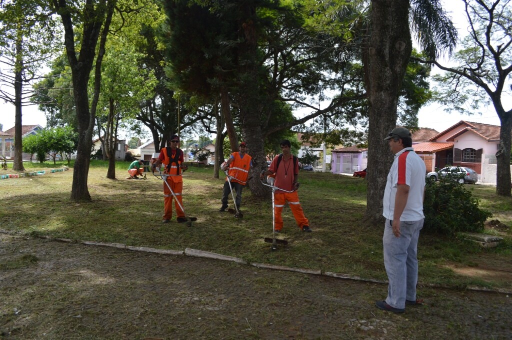 Nesta quinta-feira (24), a Secretaria de Serviços Urbanos está realizando a limpeza e manutenção da Praça Marechal Floriano (em frente à Escola Liberato).