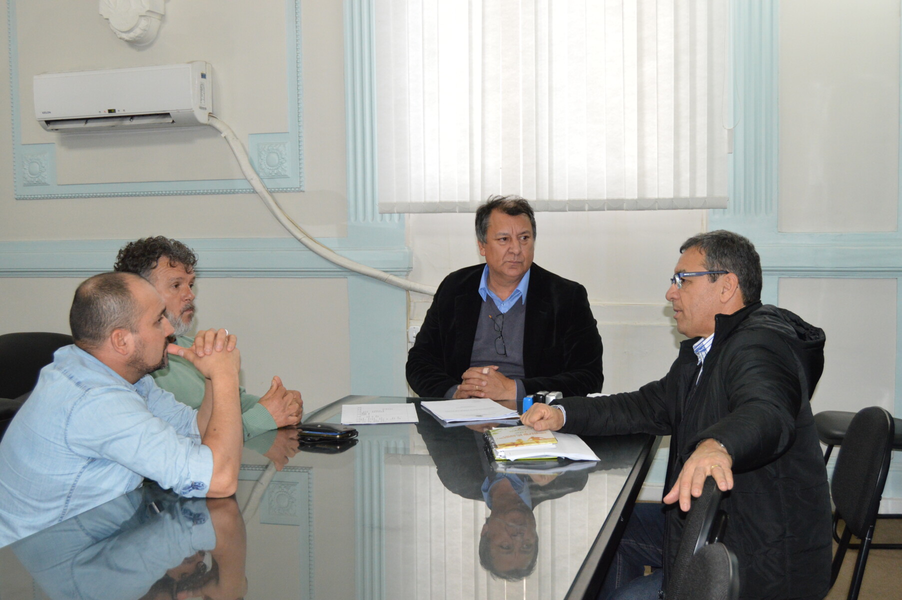 O Prefeito Ico Charopen recebeu na tarde desta quarta-feira (5), o presidente e o vice-presidente do Sindisaúde, Silvio Madruga e Sérgio Vicente da Silva, respectivamente; e o administrador da Santa Casa de Misericórdia, Wainer Machado. Com o propósito de uma construção conjunta entre o sindicato e as administrações, o encontro tratou das dificuldades financeiras enfrentadas pelo hospital, propondo através do diálogo, algumas alternativas para enfrentar o cenário atual da saúde pública.