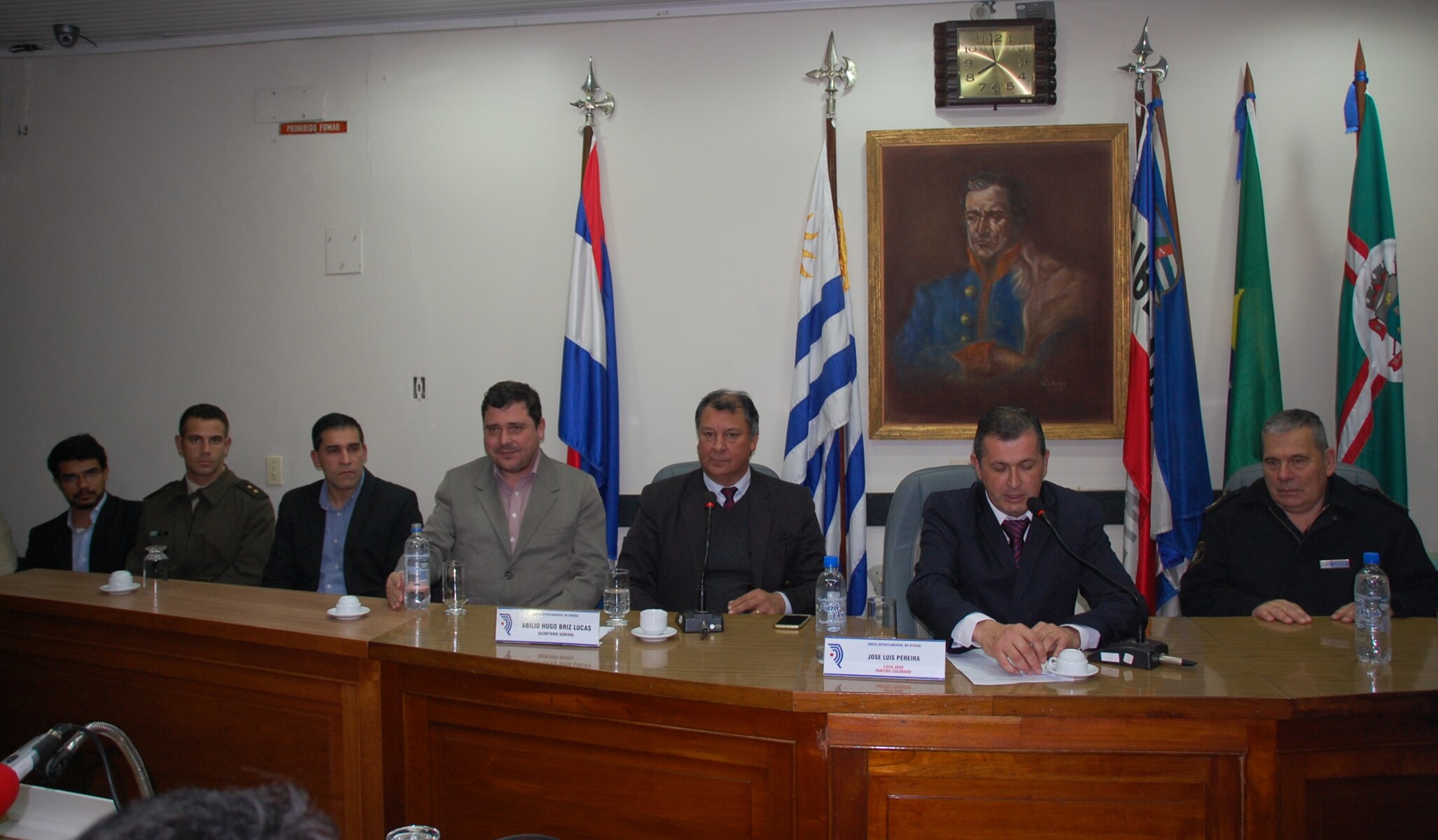 Junto ao presidente, também tomaram posse o 1º vice, Ramon Roman; o 2º vice, Gabriel Morales e o Secretário Geral, Abílio Briz. Além dos ediles uruguaios, também estiveram presentes o presidente em exercício da Câmara de Vereadores, Carlos Nilo, o assessor do vereador Marcos Monteiro e representantes da Policia e do Exército Uruguaio.