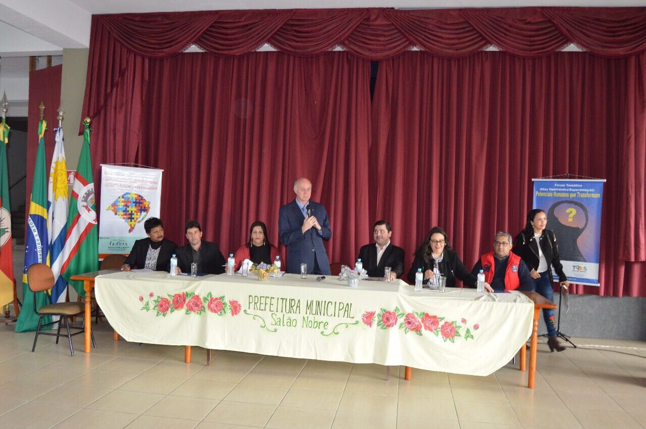 O encontro reuniu profissionais das áreas da assistência social, da saúde e da educação, em um amplo debate sobre o Transtorno do Espectro Autista (TEA) e das altas habilidades. Compondo a mesa de abertura estiveram o presidente da FADERS, Roque Bakof; a vice-prefeita, Mari Machado; a secretária de Assistência e Inclusão Social, Carla Saraiva; o vice-presidente da Câmara de Vereadores, vereador Carlos Nilo; o presidente do Conselho Municipal de Assistência Social, Enrique Lopez e os vereadores Marcia da Rosa e Evandro Gutebier.