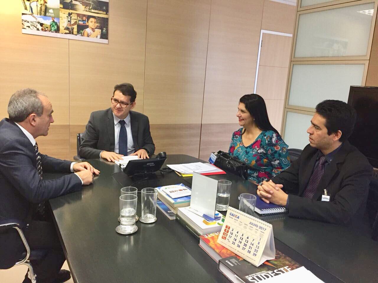Nesta quarta-feira (27), a vice-prefeita Mari Machado e o Vereador Leandro Ferreira, acompanhados do Deputado Federal Dionísio Marcon, estiveram com o Secretário Nacional de Desenvolvimento Regional, Marlon Cambraia, no Ministério da Integração. A finalidade da agenda foi entregar o Plano de Trabalho assinado pelo prefeito Ico Charopen visando a implantação de redes de distribuição de água nos assentamentos Dom Camilo, Banhado Grande, 31 de março, Sepé Tiaraju e a Comunidade Quilombola do Ibicui da Armada. Além de receber o plano, o Secretário saudou a iniciativa.