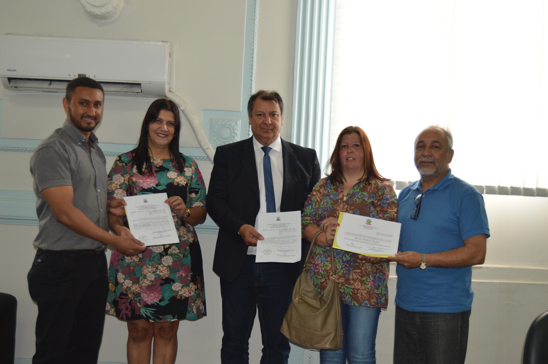 Mais dois novos servidores foram empossados nesta segunda-feira (9). Aprovados no último concurso realizado pela Prefeitura, para o cargo de escriturário, Cleiton Vagner Rosa Perez e Luciana Mello de Macedo atuarão na Secretaria Municipal da Fazenda. Durante a solenidade de posse, os servidores receberam as boas vindas do prefeito Ico Charopen, da vice-prefeita Mari Machado e do secretário da Fazenda, João Carrets.