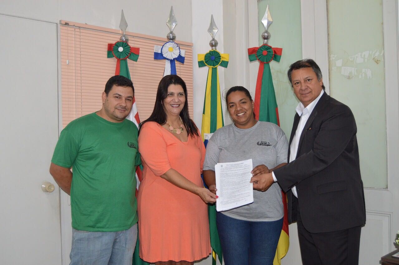 Na manhã desta quinta-feira (14), o prefeito Ico Charopen e a vice-prefeita e secretária de Planejamento, Meio Ambiente e Habitação Mari Machado realizaram a entrega da primeira Concessão de Direito Real de Uso (CDRU), da administração. O documento contempla uma área na Vila Emília e foi entregue aos empresários Graciela Dias Soares e André Soares Dias, proprietários de uma tornearia instalada no local. “É uma conquista que vai abrir novos caminhos para nós. Agora vamos poder encaminhar a liberação dos alvarás”, comentou André, comemorando a regularização.