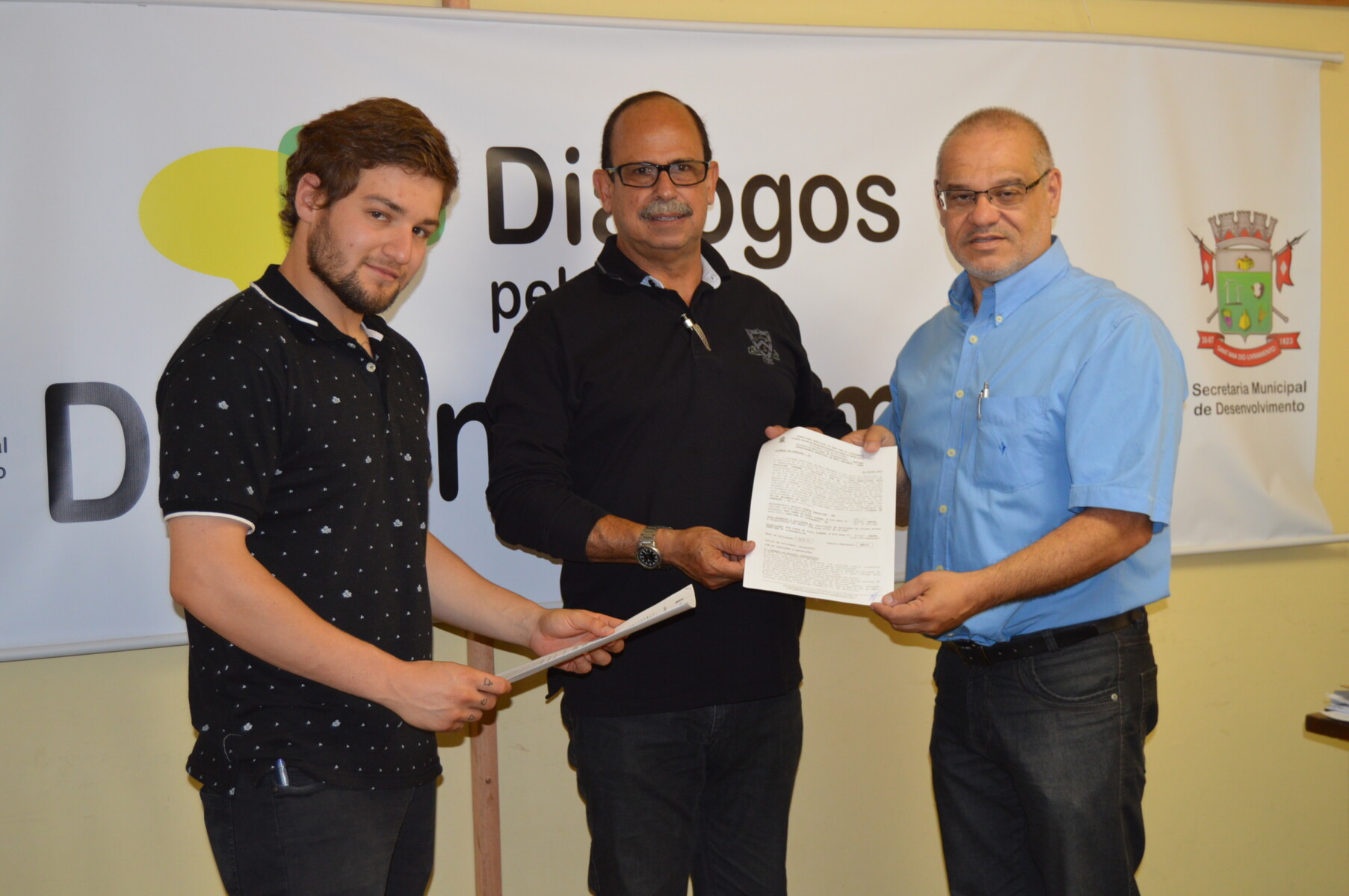 Através da Sala do Investidor Victor Hugo Fialho, mais um empreendimento recebeu a documentação de instalação no município, na manhã desta terça-feira (19). Na oportunidade, o proprietário da Fazenda Palomas, produtor rural Atilio Ibargoyen recebeu a licença de operação para a Sala de Manipulação de Carnes Ovinas, empreendimento avaliado em R$ 150 mil. A documentação foi entregue pelo secretário de Desenvolvimento, Calico Grisolia, integrante da equipe da Sala.