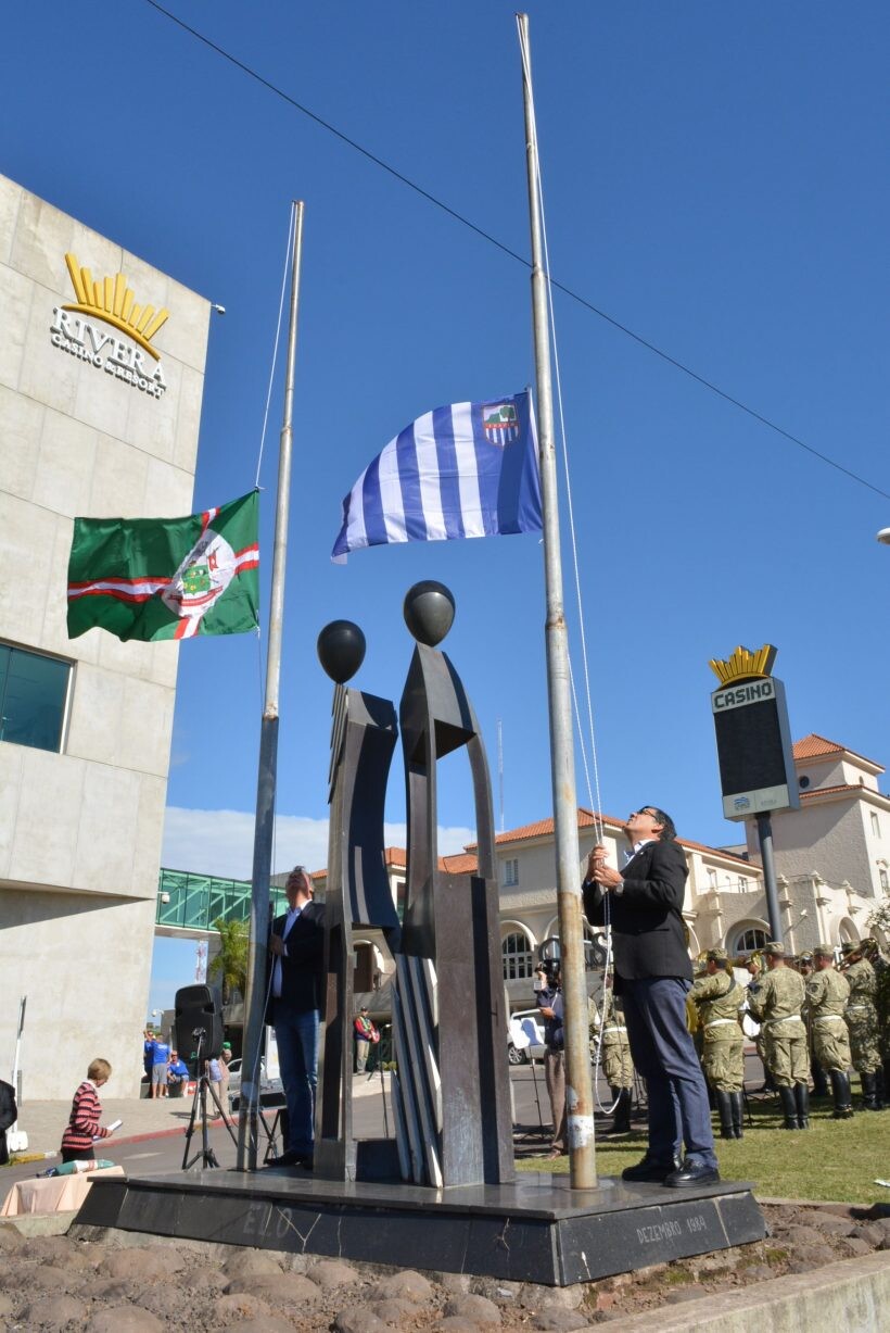 A Prefeitura Municipal e a Intendência Departamental de Rivera promovem nesta sexta-feira (27), às 11h, a solenidade de troca de bandeiras do Monumento Elo, localizado na Avenida 33 Orientales, próximo a Rua Uruguay.