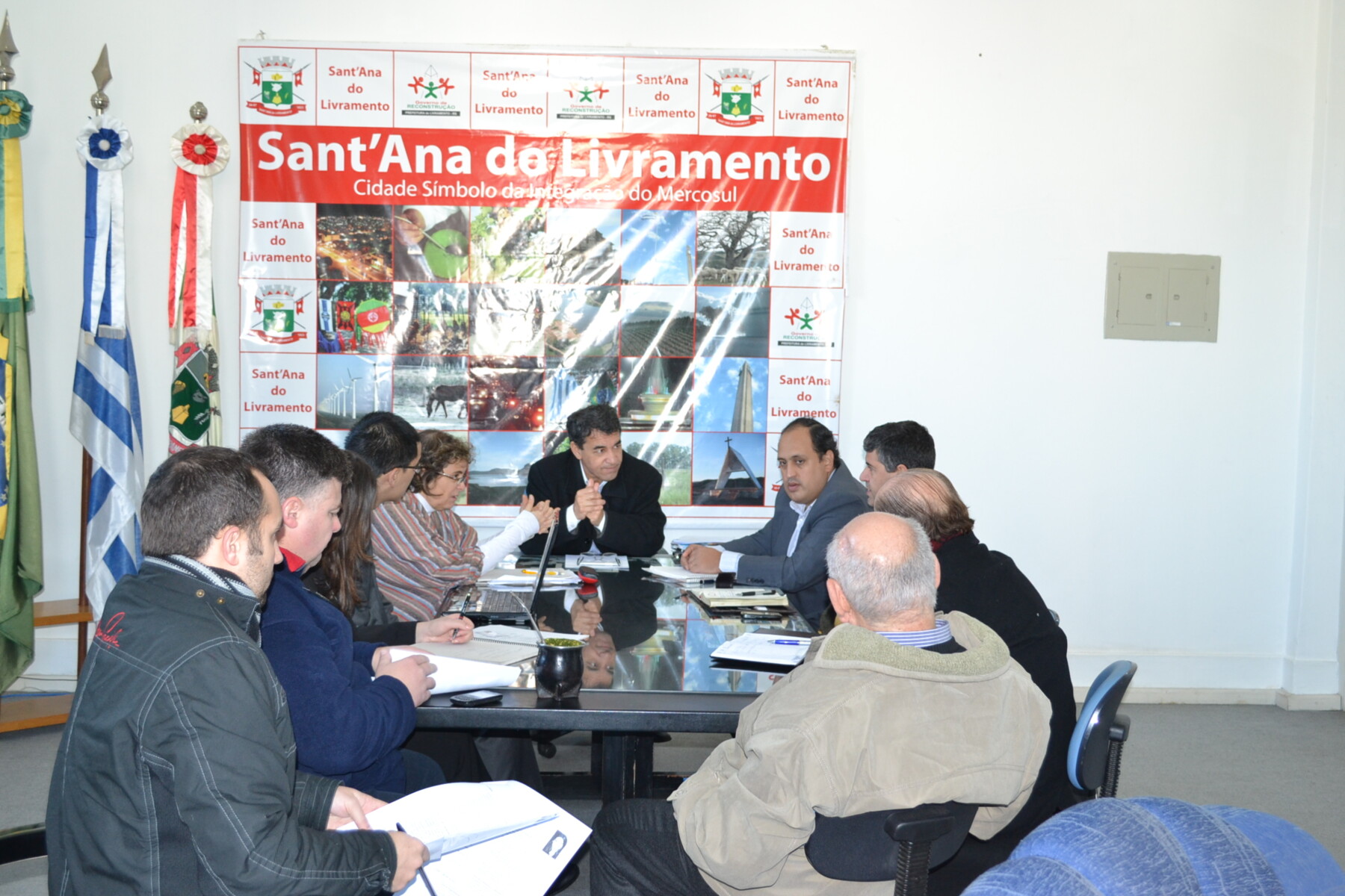 Na manhã dessa sexta-feira,22/07, o prefeito Wainer Machado e os secretários Geral do Governo, Robson Cabral, do Planejamento, Zulmir Rasch, do Desenvolvimento, Sérgio Aragón, e da Fazenda, Irani Cobas e o engenheiro agrônomo da intendência de Rivera, Aler Donadío, receberam nas dependências do Palácio Moysés Vianna, os especialistas setoriais do BID(Banco Internacional de Desenvolvimento),Veronica Adler, Pablo Garcia, Kristina Lara Ryan Tang, onde receberam informações sobre as condições da situação da fronteira. Durante a reunião, o Prefeito Wainer Machado informou que existem muitas áreas a serem melhoradas, entre elas a questão das estradas fronteiriças, que são em torno de 240km, saneamento básico para as cidades, levando em conta a preservação do Aquífero Guarani, as áreas de saúde, assim como a parte de infra-estrutura da linha divisória.