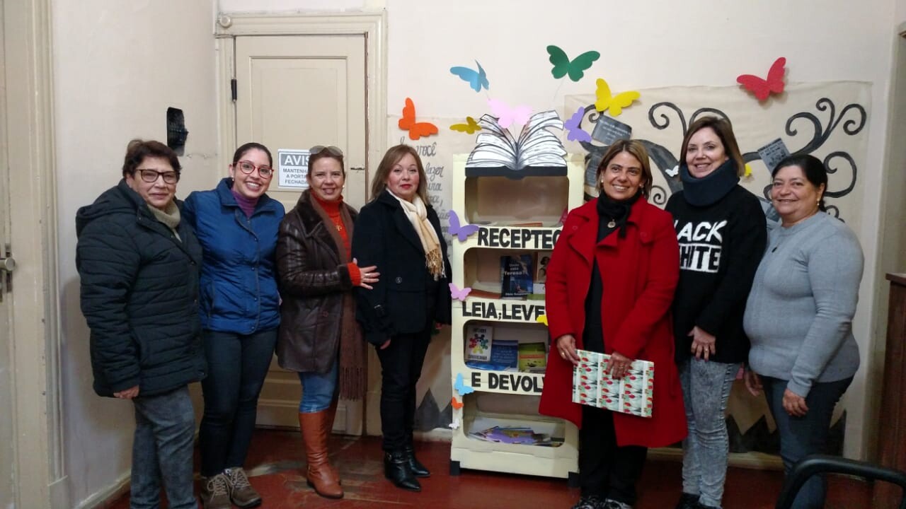 Esta atividade está inserida no Projeto de Arte e Oficinas Na Ponta da Língua. A Recepteca está à disposição do público que passa pela SME podendo realizar a leitura das obras no local ou levando para casa. Na recepção pode ser feito o cadastro para a retirada e devolução dos livros.