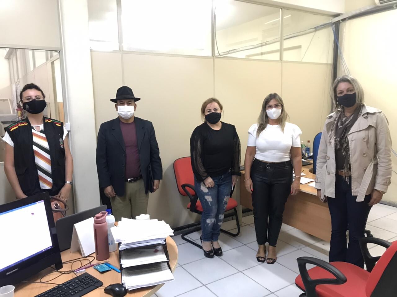 O Grupo de Educação Fiscal - GEFIM de Sant'Ana do Livramento, representados pela sua Coordenadora Cláudia Santanna e da Fiscal de Comércio e Posturas Tisha Bordon, esteve no dia de ontem, 24/03/2021, reunido na Secretaria da Fazenda juntamente com a Secretária da Fazenda Gisela Alvarez, a Secretária da Educação Sandra Pontes e do Inspetor da Receita Federal para o planejamento das ações que serão realizadas em 2021, agendamento da entrega de 10 computadores para a Educação Fiscal pela Receita Federal e programação de palestras do Inspetor no município.