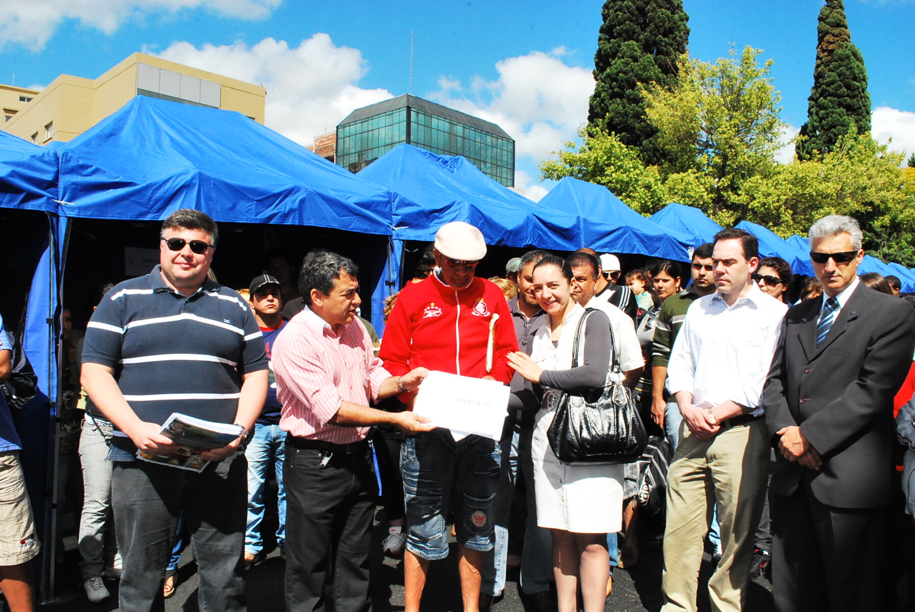 A entrega das novas bancas aos comerciantes informais junto a avenida João Pessoa, foi saudada pelos ambulantes que atuam junto a área da Linha Divisória. O prefeito Wainer Machado, o secretario de Desenvolvimento, Sergio Aragon, juntamente com a juíza Dra Carmem Lucia da Fontoura, o delegado da policia Federal Alessandro Lopes, mais o Inspetor Chefe da Receita Federal, Luciano Santana, e o capitão Moura da Brigada Militar estiveram fazendo a entrega das novas bancas para os novos micro empreendedores (camelôs).