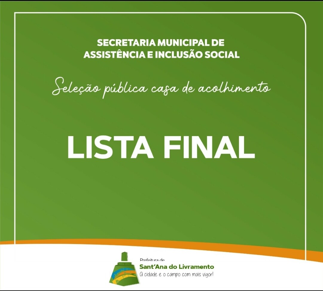 LISTA FINAL SELEÇÃO PÚBLICA CASA DE ACOLHIMENTO