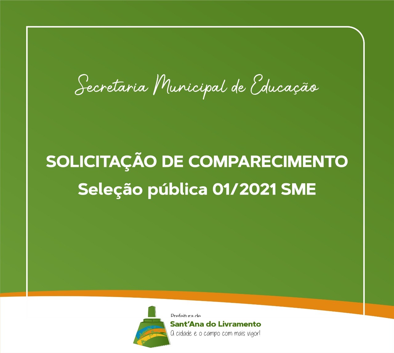 Solicitação de comparecimento - Seleção pública 01/2021 SME