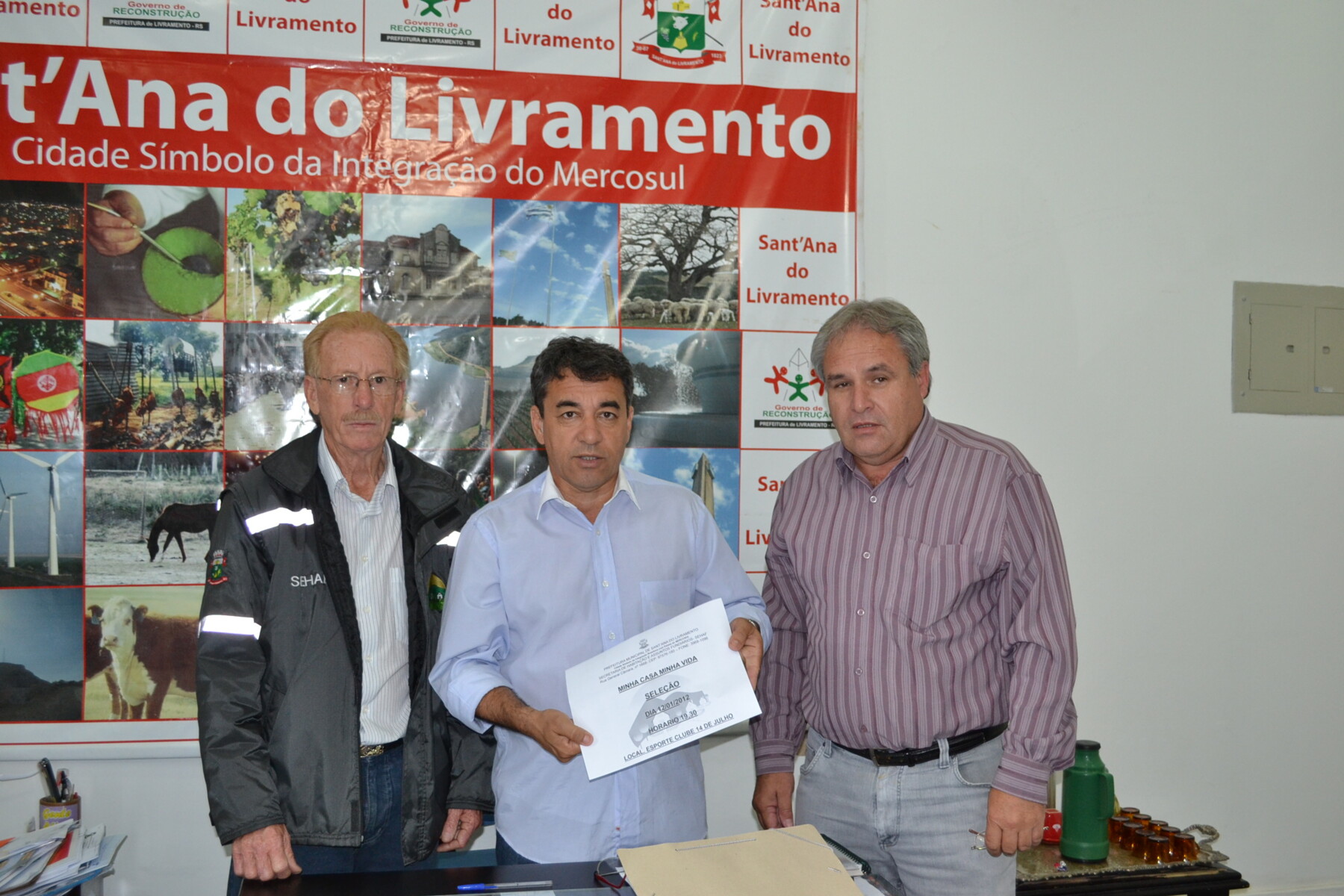 Na manha de sexta-feira, o Prefeito Wainer Machado recebeu em seu gabinete, no Palácio Moysés Vianna, o Secretário de Habitação e Regularização Fundiária, Luiz Pedro Garragorry ( Foguinho) e seu Executivo da Pasta, Sérgio Munhoz, onde foi definido o local e data para o sorteio das casas do programa Minha Casa; Minha Vida.