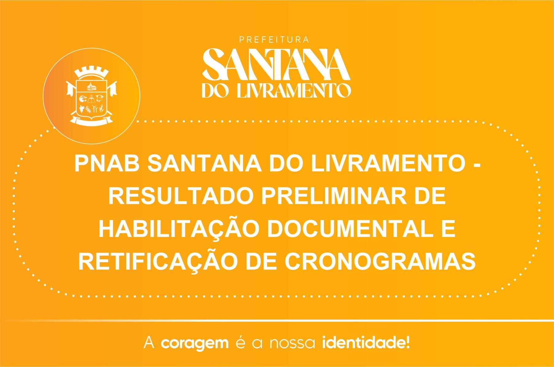 PNAB SANTANA DO LIVRAMENTO - RESULTADO PRELIMINAR DE HABILITAÇÃO DOCUMENTAL E RETIFICAÇÃO DE CRONOGRAMAS