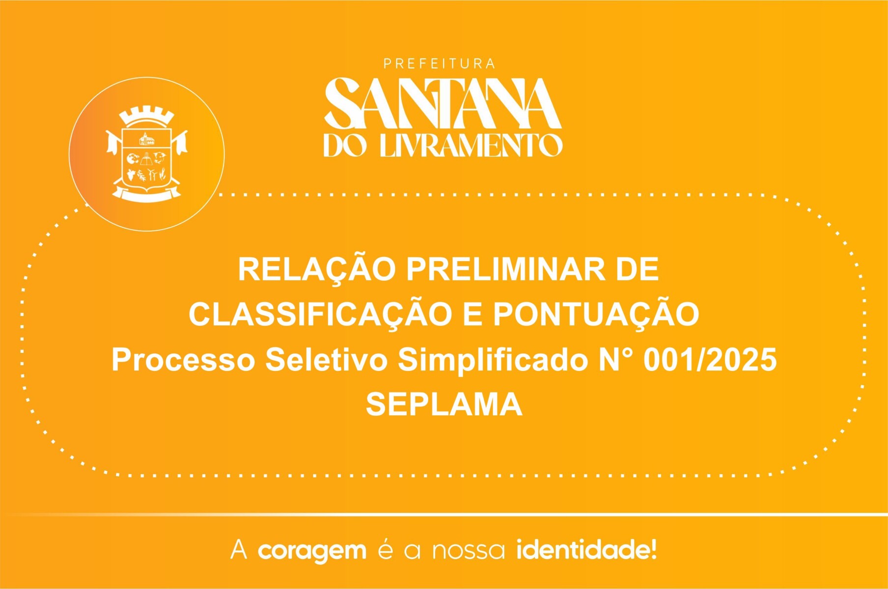RELAÇÃO PRELIMINAR DE CLASSIFICAÇÃO E PONTUAÇÃO - PSS 01/2025 - SEPLAMA