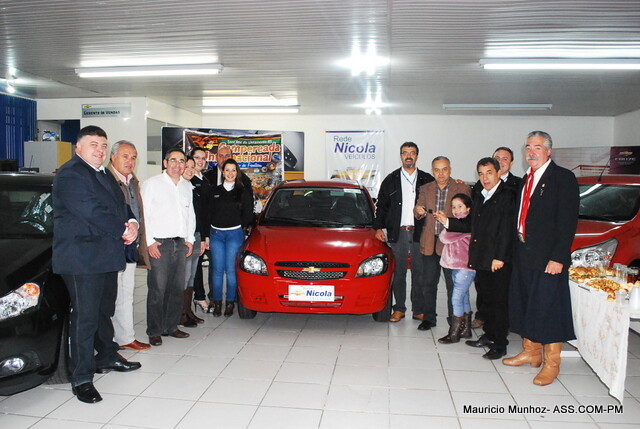 Na manhã de ontem, o prefeito Wainer Machado e integrantes da comissão organizadora da 30ª Campereada Internacional, realizaram a entrega oficial do veículo Celta zero quilômetro, da promoção Passaporte Premiado, sorteado durante as festividades alusivas ao evento. O vencedor, Vanderlei Moreli Gomes, entusiasmado com o prêmio, afirmou que nem acreditava que fosse possível ser contemplado, já que havia comprado apenas um cupom. “Comprei para ajudar, e demorei a conferir se meu bilhete era o premiado. Nem mesmo quando vi que estavam procurando o vencedor no jornal, imaginei que pudesse ser eu. E agora sou contemplado com um veículo zero quilometro, estou muito feliz”, destacou Vanderlei. A entrega do GM Celta foi realizada nas dependências da Revenda Chevrolet Nicola, oportunidade na qual os funcionários da empresa, autoridades e familiares compartilharam um café da manhã comemorativo com o ganhador. O secretário geral de governo, Sérgio Aragon, bem como o presidente da Coordenadoria Municipal de Tradicionalismo, Sérgio Munhoz, entre outros integrantes da administração pública e equipe de trabalho da revenda, após a entrega, parabenizaram o ganhador. O evento encerrou com um coquetel.