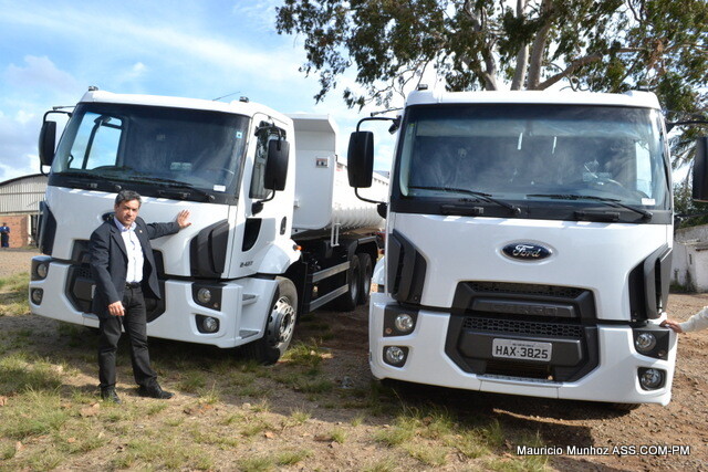 Caminhão novo, ano/modelo 2011/2012, marca FORD, modelo Cargo 2422, Motor diesel, 6 cilindros, 220 CV, PBT 23.000kg, com direção hidráulica e implementação com caçamba basculante de 12m³.